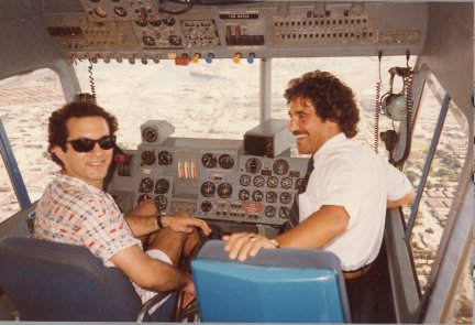 One day I went for a ride in the Goodyear blimp with some KCHR-FM radio station people and a few soap-opera starlets. Here I am in the blimp. After I shared my experience with my bandmates, The Motels, to a member, decided that personal blimps--one for each member--would be the ultimate status symbol in L.A., a sign that we had finally "made it." Unfortunately, this is as close as I got.